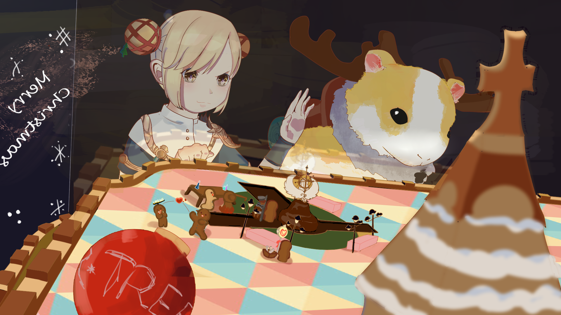 -Description: Klaipeda made of gingerbread, green tea pudding and chocolate fountain! Looks great! And I am window shopping with Hies’s hamham! what a wonderful Christmas time! ‘Buzzing…’ Wait… What’s that noise… Why I…