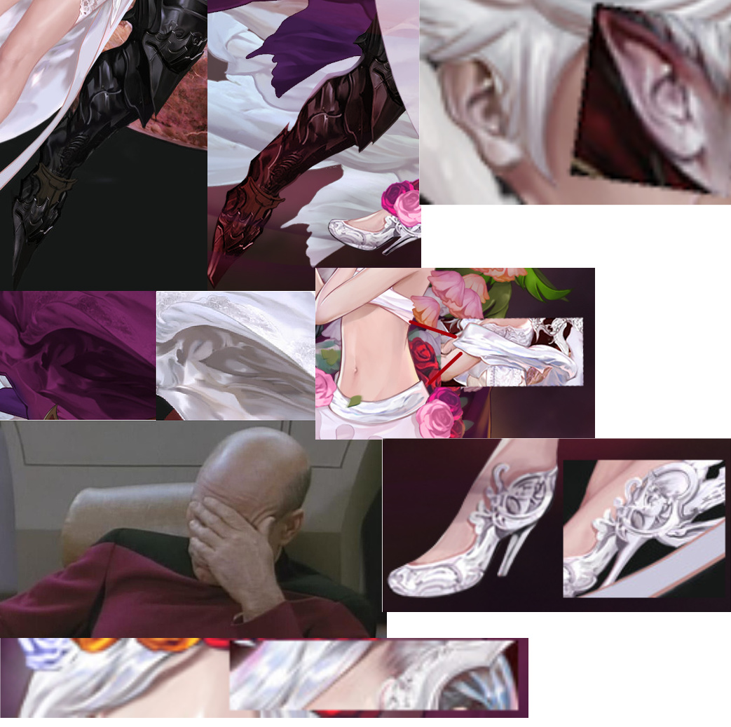 The author surely has the ability to render his/her own original painting, I don’t know why they surrender to this. It’s ok to use reference/pose reference, but to literally copy and paste without the proper modification (yeah, photobashing its pretty common in the game industry) is straight plagiarism