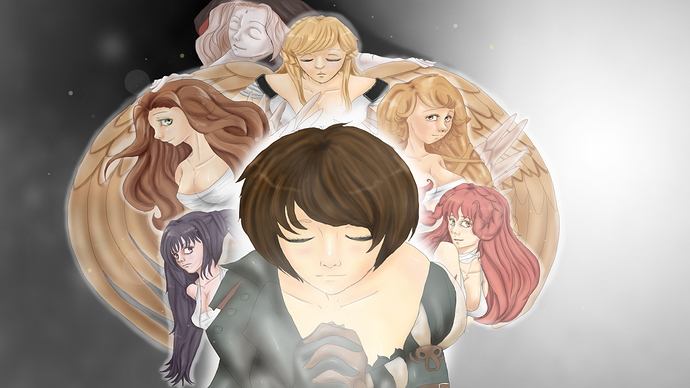 This is a picture I drew of my plague doctor/priest with all of the Goddesses. I normally just draw faces so this was weird for me but I tried my hardest xD. Hopefully you guys like it~