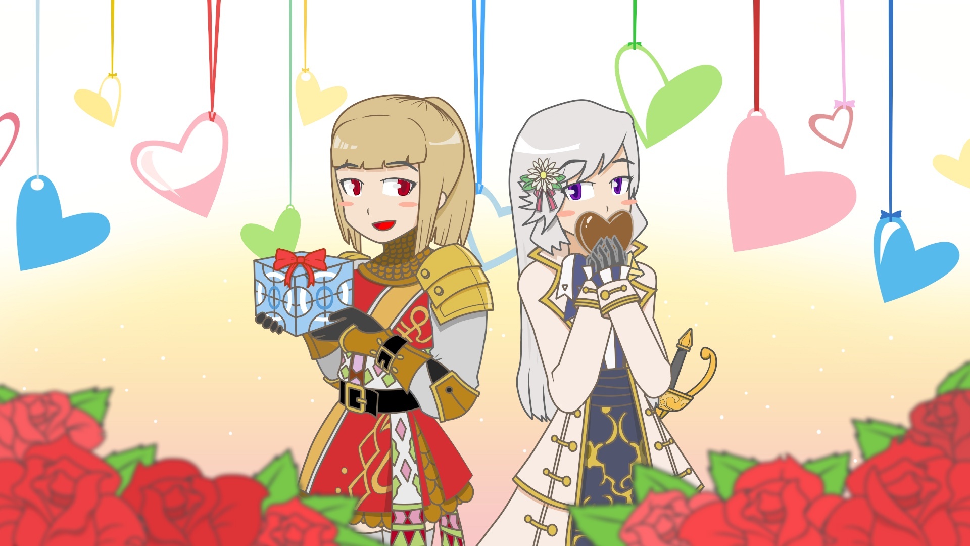 Brief Description: Two girls, two different presents. Which do you favor? Boss cube which may contain a Petamion recipe or a chocolate made with love?