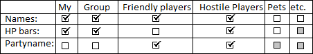 Or maybe you want to see player names who not in your party, but you don’t want to see a spam of HP bars. It’s ridiculous that you need find a way to r.c. the player, to see his name : D