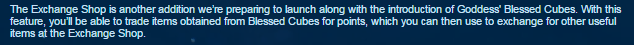 Premium costumes already sold at the TP Shop, excluding Circle 3 costumes and the Cockatrice costume, will be removed from the TP Shop and sold via Exchange Shop. As for newly-introduced premium costumes, we plan to release them for purchase only via Blessed Cube. After their release, cosmetic items sold via Blessed Cube will then eventually become available at the Exchange Shop, where they will be exchangeable for recycling points.