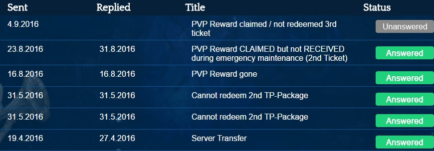 The problem of support ticket is the only communication between players and IMC. Here is an evidence :
