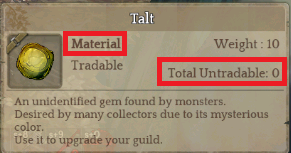 Well, right now. We’re stuck trading 10 Talts for the next 5 days. I feel bad for the guy because he needs the money badly. I already have the headgear and he’ll be waiting for the “installment” style Talt trading. Sorry, I can’t post screenshots, I’m not at home.
