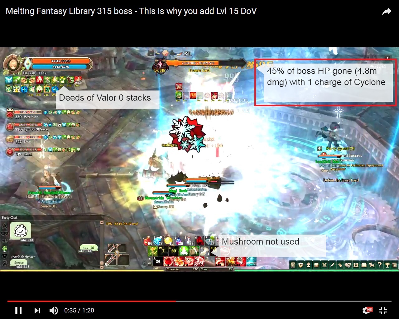 You are the man, you have too much sense for you and aki. The point of video maybe was not that, but from the moment him putted such a thing: “45% of boss hp gone(4,8M) with 1 charge of cyclone)”… well, the truth must be said, is his problem if he accept or not.