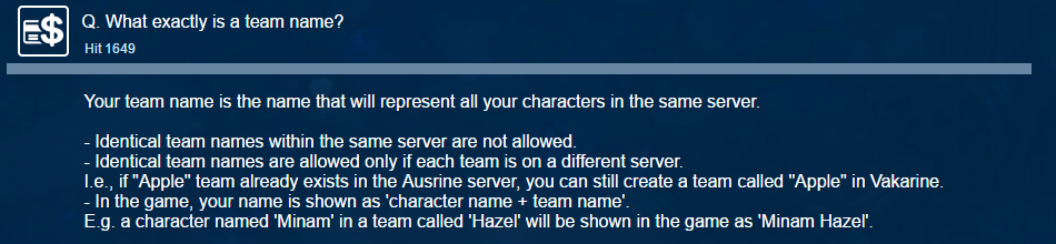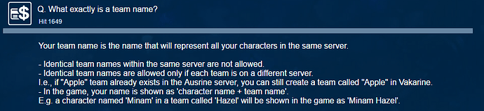 When I go to their official FAQ on their site and read “IDENTICAL TEAM NAMES ARE ALLOWED ONLY IF EACH TEAM IS ON A DIFFERENT SERVER.”, I expect for identical team names to be allowed only if each team is on a different server.