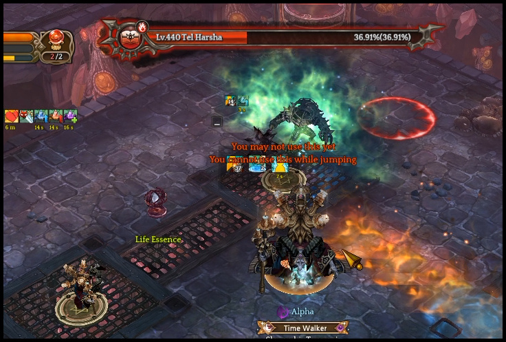 Tel Harsha has two different teleport skills. The first one is directly teleport with explosion attack, while the second one is illusion teleport that does damage per hit.