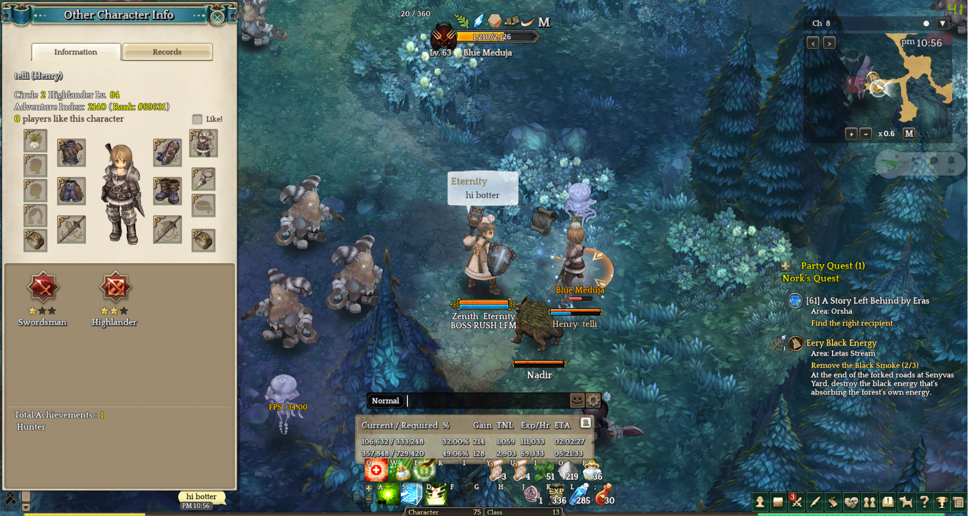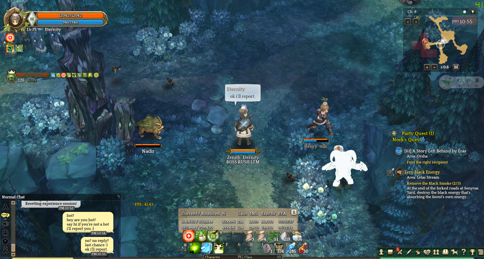I gave him a chance to at least speak to me. Also, GM’s should watch over this map… I’m doing my quests and I see a whole lot of bots that are running around together killing mobs. Bot problem sucks… Please do something about this…
