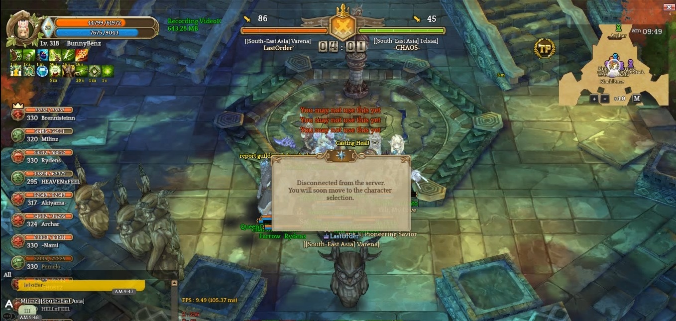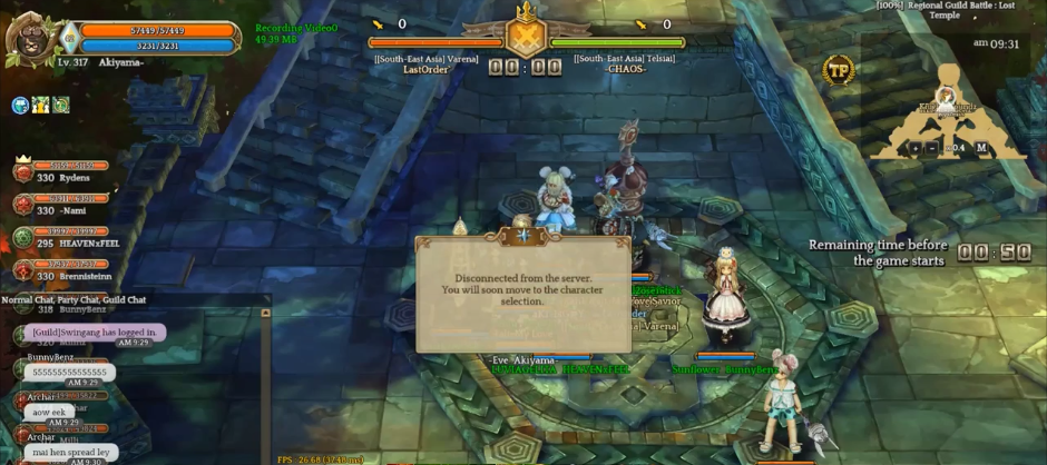I suppose other guilds have also fallen victim to -Chaos- crashing GvG. It’s not easy to submit a video of them crashing because we don’t know what’s causing the crash. It might be a 3rd-party software. So I’m just posting this thread to make SEA server aware of -Chaos- tactic in GvG.