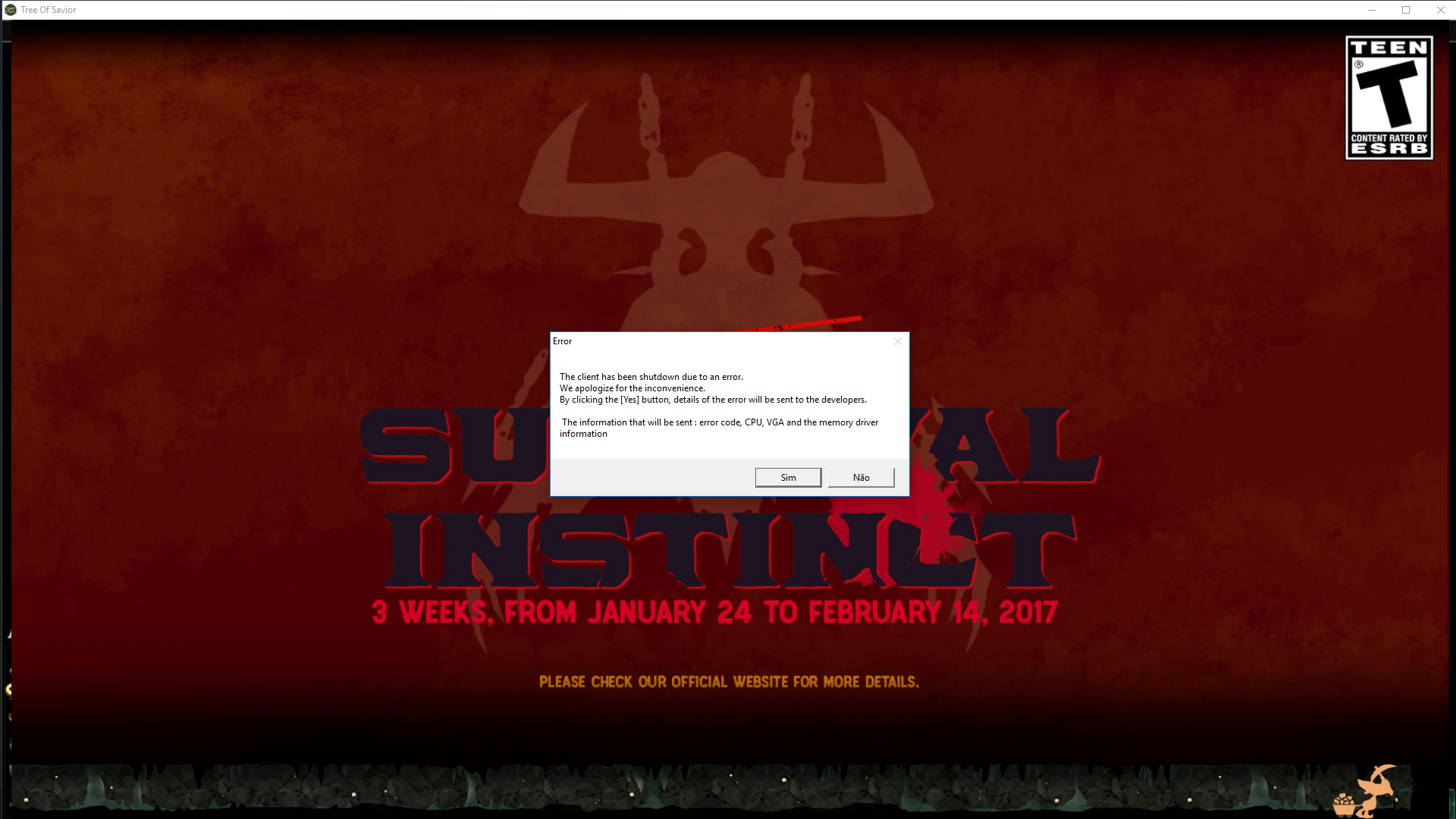 bom, hoje estou tentando logar o dia todo, tentei logar o dia inteiro e nada, sempre depois de escolher o personagem, quando terminava a barra de carregamento a caixa de dialogo “the client has been shutdown due to an error.