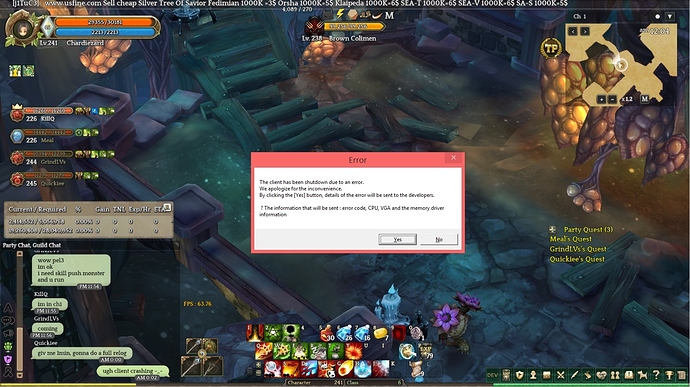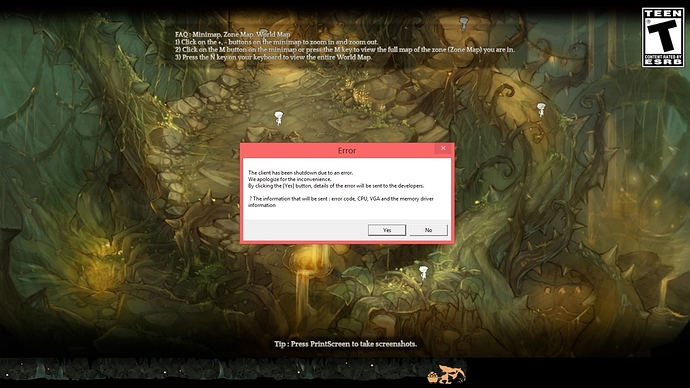 This happens almost everytime i play. When I go to dungeons, missions, grinding, or etc… This error message pops up twice and then it forces the client to close.