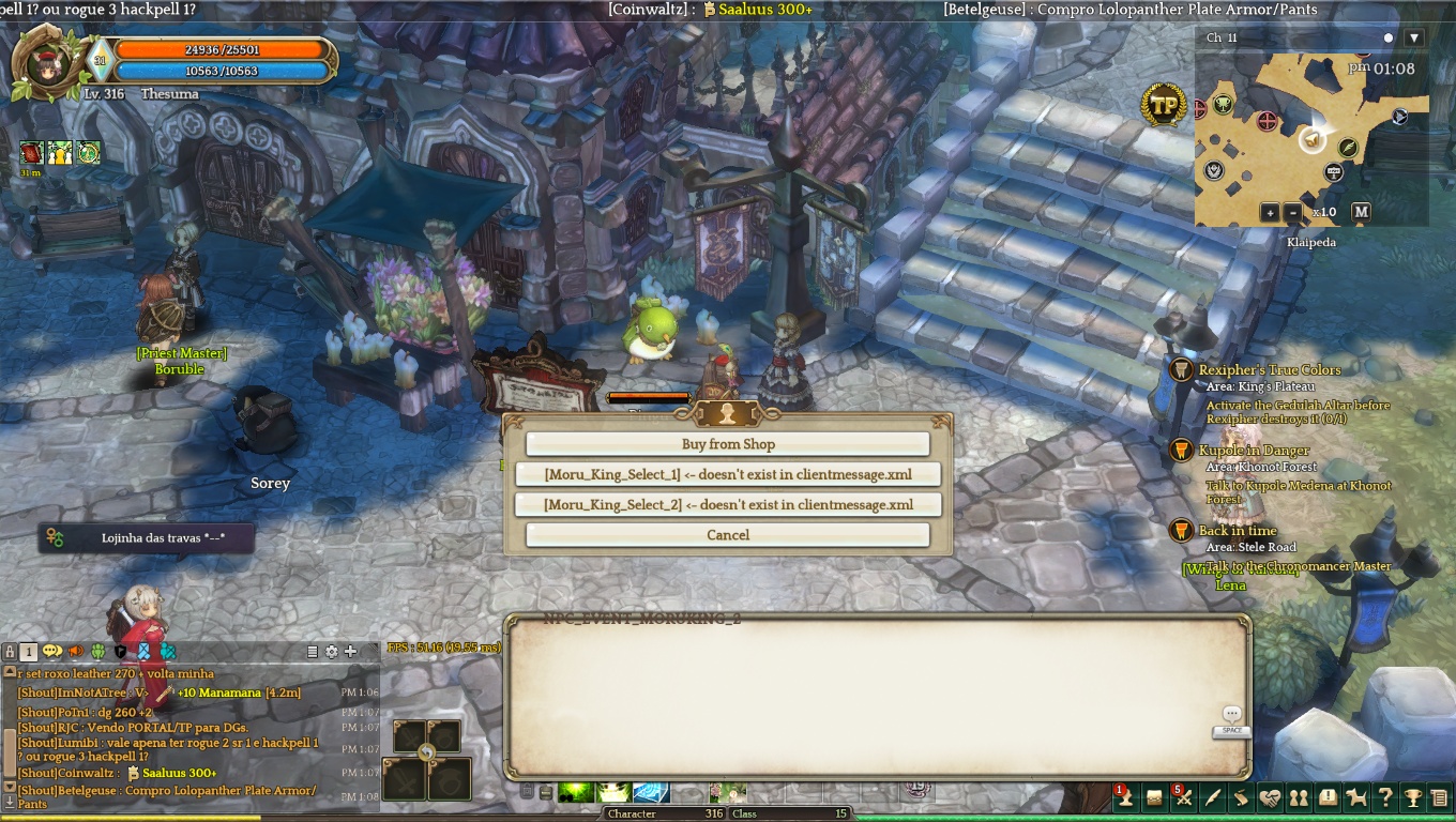 Some npcs have names and bugs as in the image that I will show, the items that fall from the monsters comes with images of other items follows in the image below too and now is giving this error in the screen of characters.