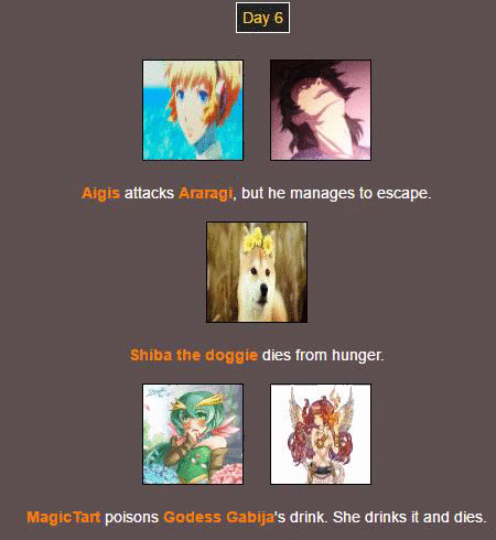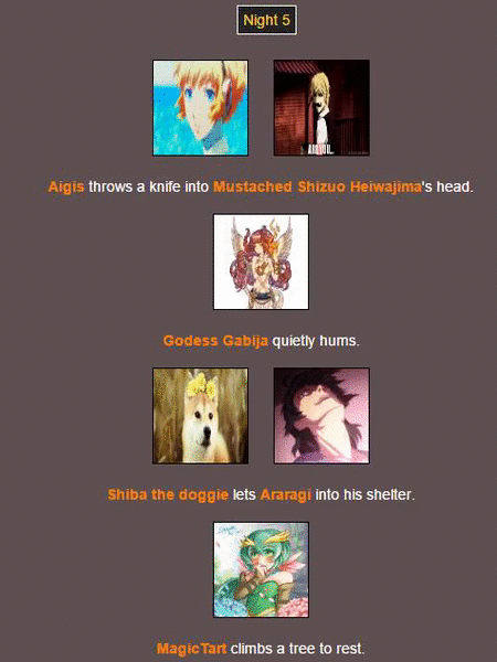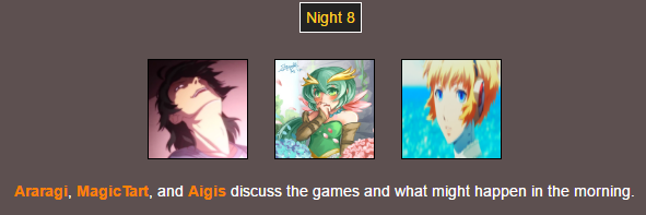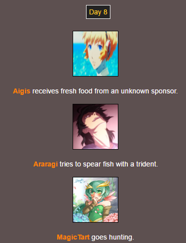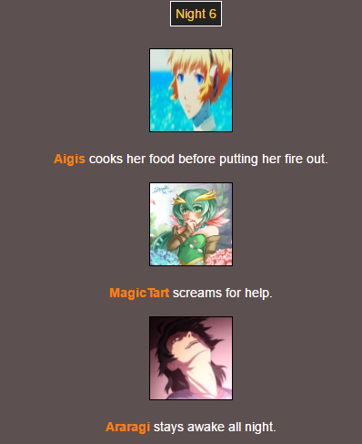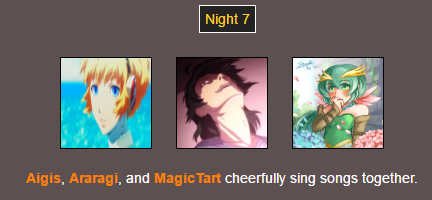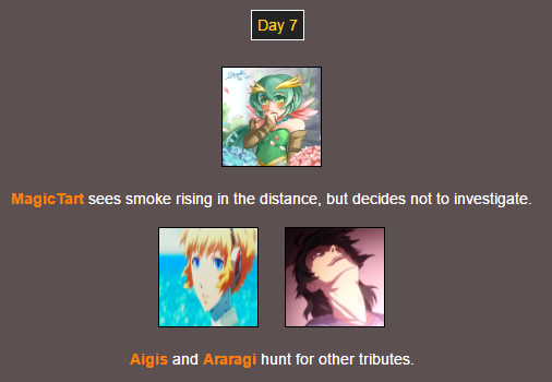Poor @MagicTart , she screams for help and Aigis and Araragi are hunting for other tributes…