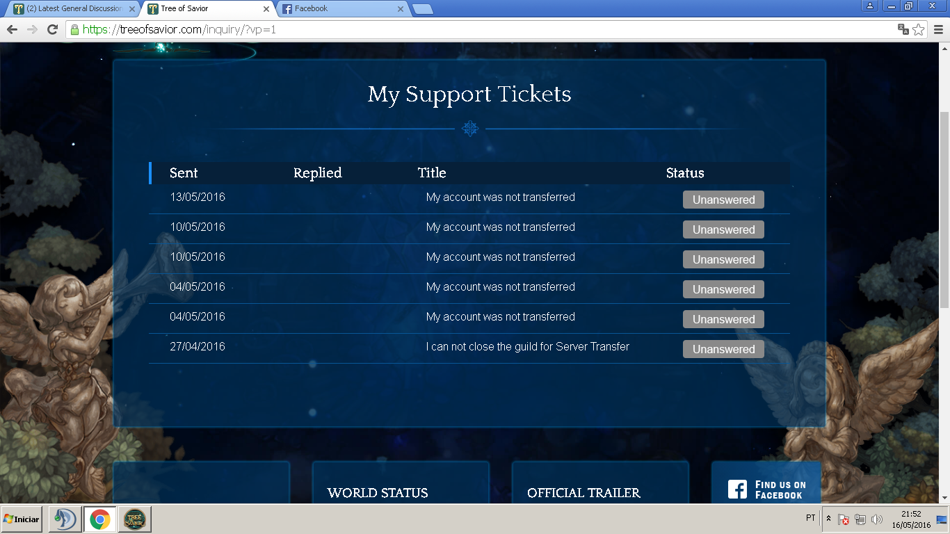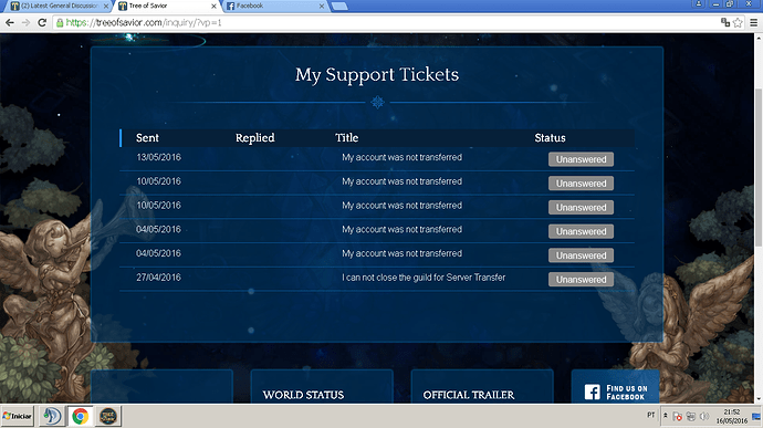 transferred and I ended up alone in Orsha server,But this is not the worst,open many other tickets