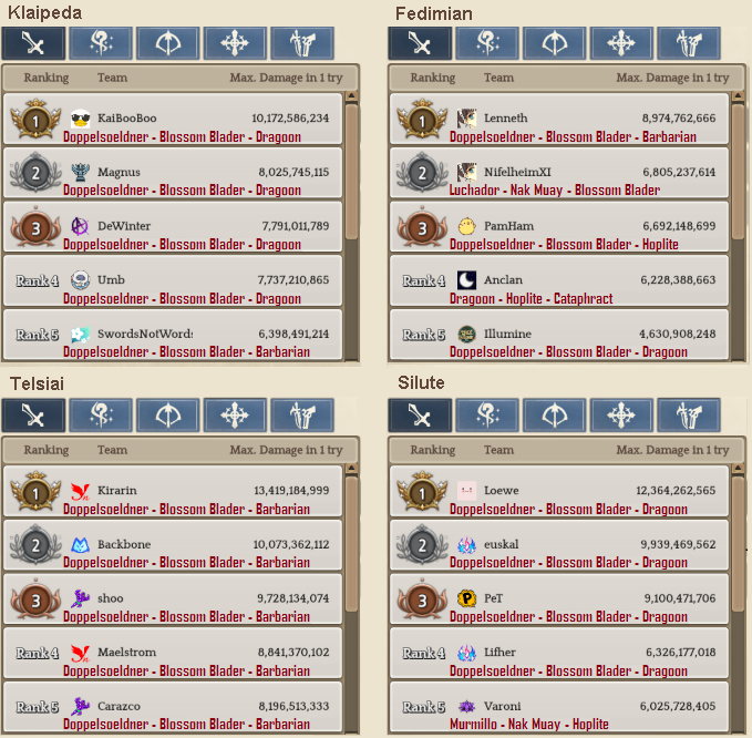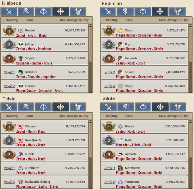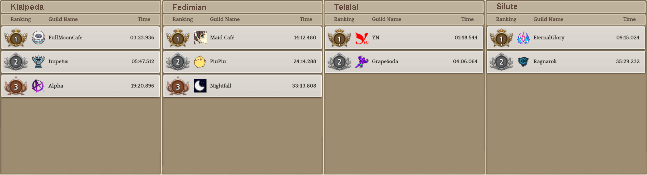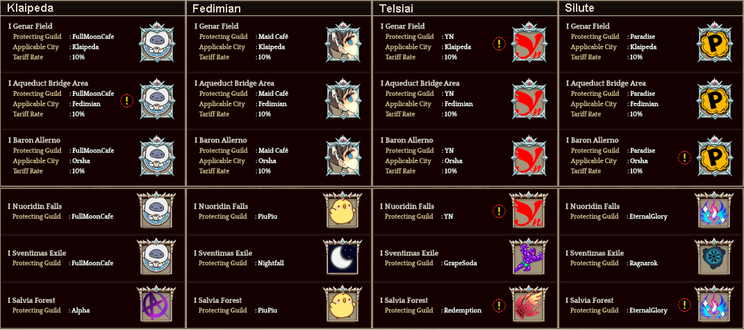 Welcome to your weekly dose of info round-up on Guild Territory Wars, Boruta Guild Raids, Giltine Guild Raids and Weekly Boss Raids on every server! In here, I will be doing on covering on all servers, Klaipeda, Fedimian, Telsiai, Silute and any new happenings in Tree of Savior every week on Monday/Tuesday!