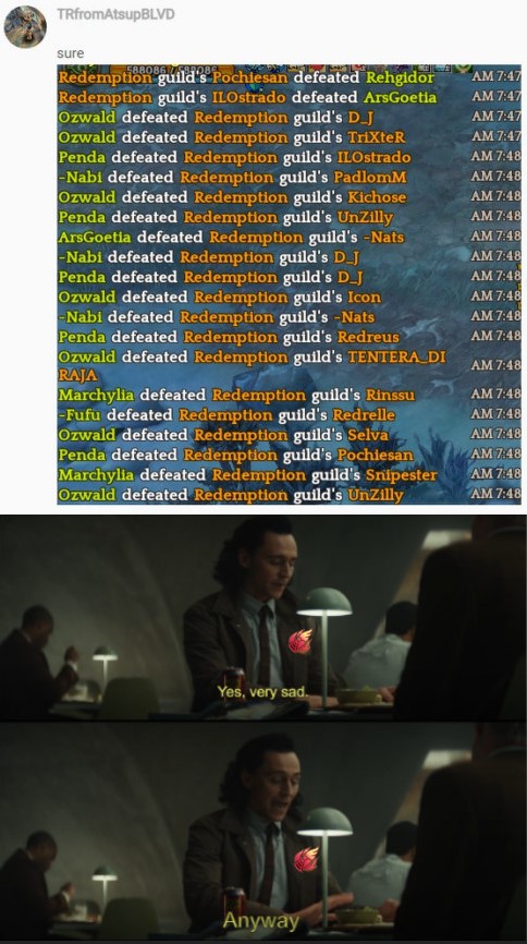 All that did was show that Skippy knew the guild the Klaipeda alt I used to gather Round-Up information is in, and that whatever guild it was will surprise you, still nothing about FMC. You still haven’t proven or shown anything remotely conclusive, so feel free to continue searching for that needle in a haystack that does not exist.