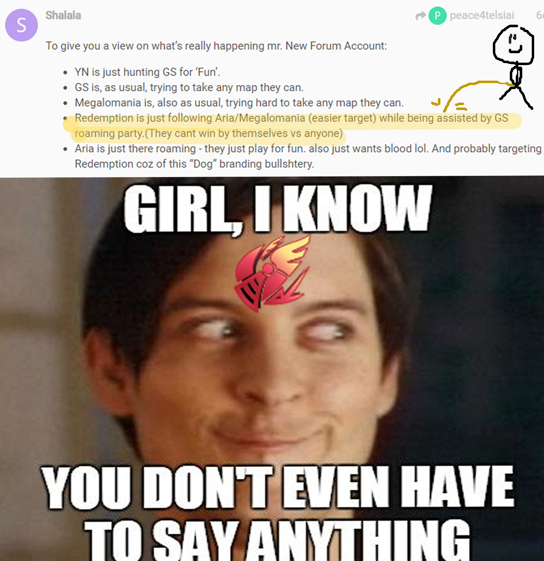 Lol gs already forgot about their war with megalo long long time ago… Didnt know megalo still thinks they are at war with gs and making this audacious memes when they land a lucky punch:joy: