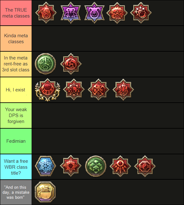 In the meantime, here’s a biased, misinformed fake, meme and totally inaccurate class tier list I made for each class tree to pass some time while waiting: