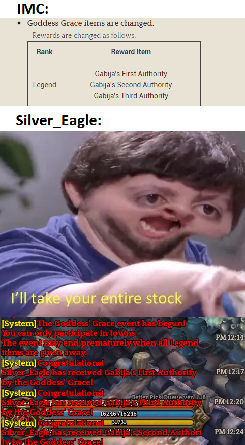 Players were waiting for the announcement to see what balancing and plans IMC has in store for IToS and its Relic 10 situation … and as you can see, IMC basically went screw it just give Relic 20 instead AKA a huge 180 from the chat.