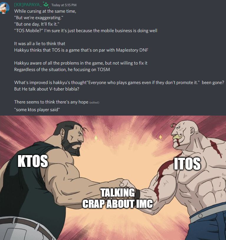 Kim Hakkyu (or so we believe him to be) expressly said that he never wanted to bring Relic 20 over, admitting it was a mistake and that he “never showed anything that would imply he would bring Relic 20 over” or something (the memes and pictures say otherwise though). With that in mind, the chat was actually leaning towards how IToS’s content should be balanced towards Relic 10 instead so players won’t feel any loss from not getting Relic 20. Players were also talking about how IMC should also address concerns about there being many veterans who farmed for Relic 20 and now have way too much Relic peripherals to spare due to IMC’s non-response and obliviousness to the situation thus far. Kim Hakkyu acknowledged this, telling players in the Discord that he will bring these over to the Dev team and will make an announcement regarding it soon after while reassuring players who tagged him about wanting to convert their Relic peripherals into content points that Relic 20 will never come.