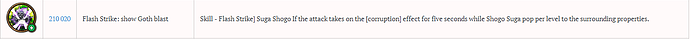 Flash Strike: show Goth blast skill [Flash strike - if the attack Shogo Suga , Suga Pop Shogo for 5 seconds to nearby properties he takes on the level [ corruption ] effect. × 4 SP +12