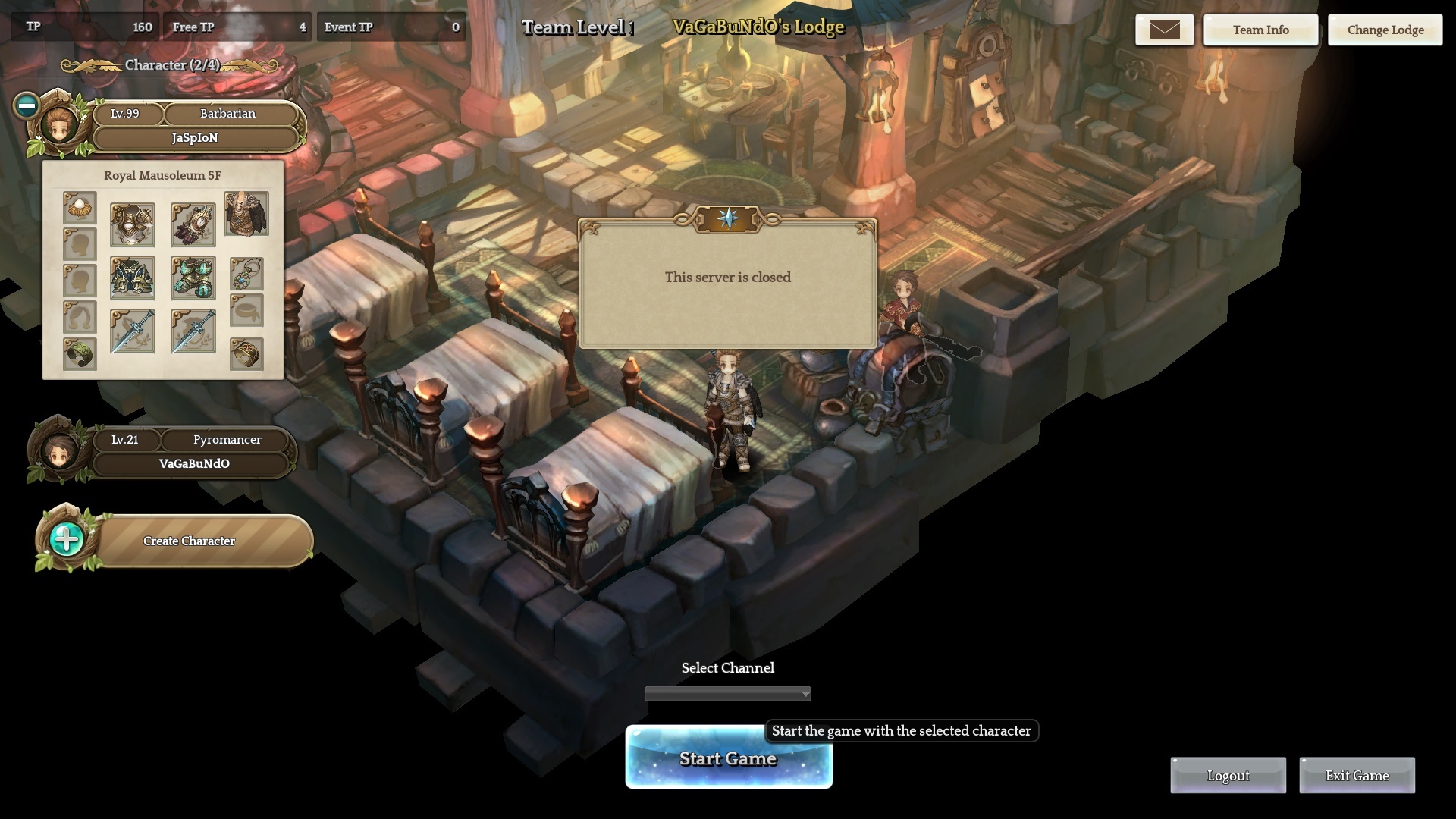 My barbarian can not will play. Says the server is closed.