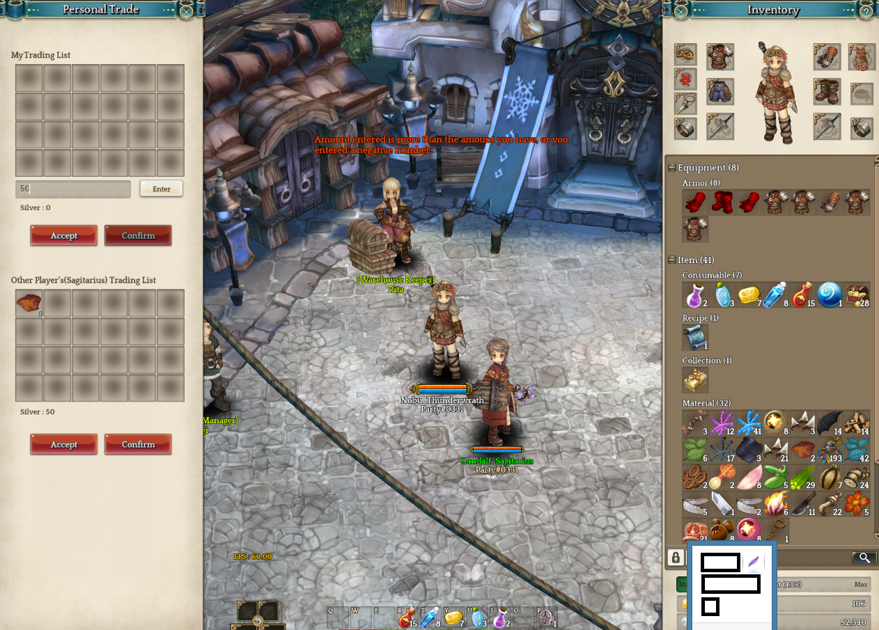 A few minutes ago, I tried to trade a Blue Orb Panto Archer with my friend, and this appears to me. Even with silver or materials, the blue orb keeps on my inventory.