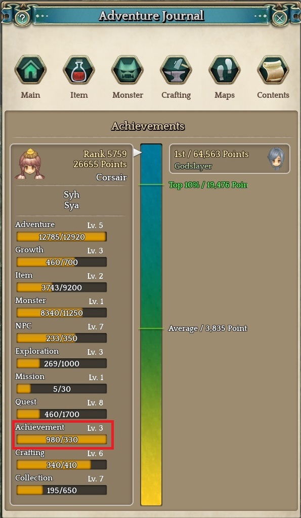 Bug Description : First bug is the Archievement points stucked in level 3 as shown in the image.