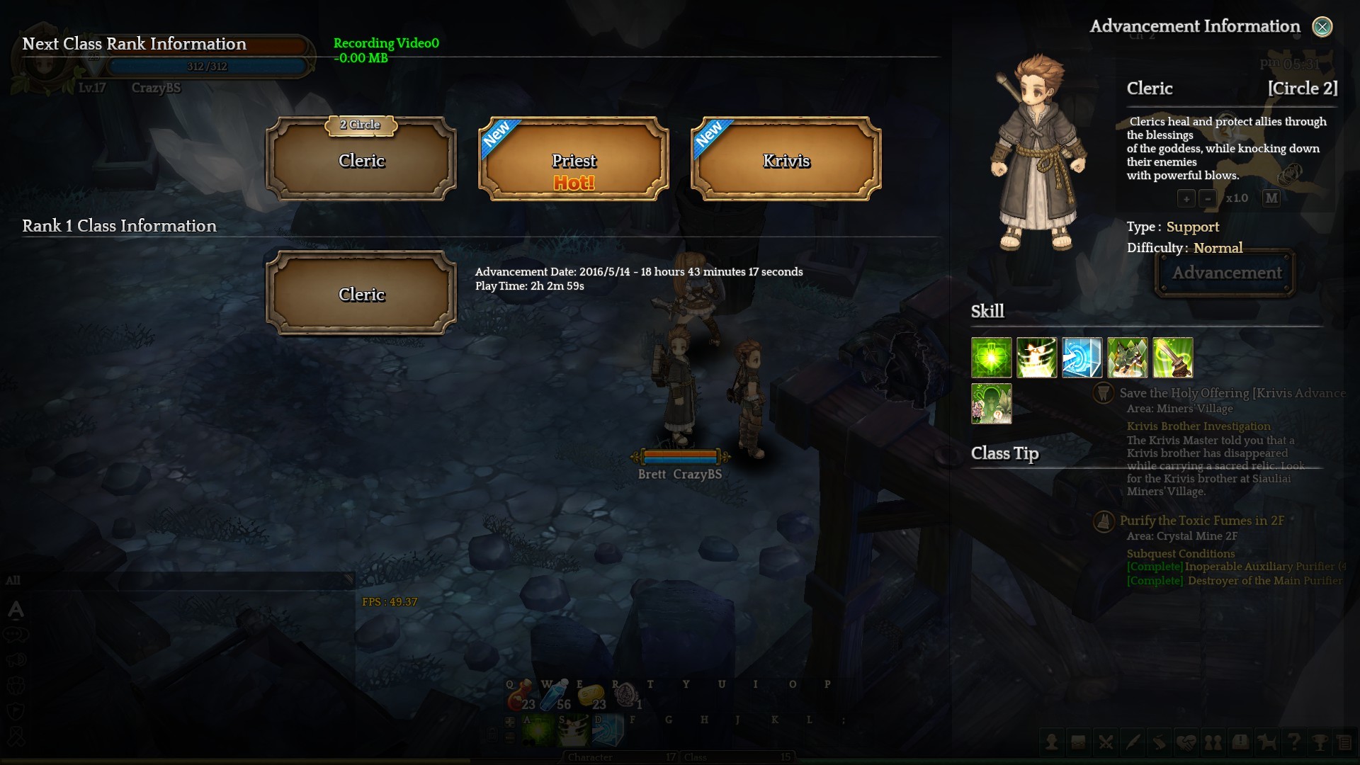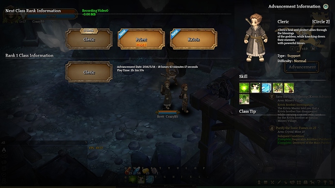 Bug Description : There is no “Select Class” button when I click Advancement. I am a Rank 1 Cleric. None of three options have a “Select Class” button that I have seen in other screen shots. I am in 2F of the Mines with max EXP on lvl.15 cleric (17/15). the Cleric Master and the Priest Master offer nothing for quests.