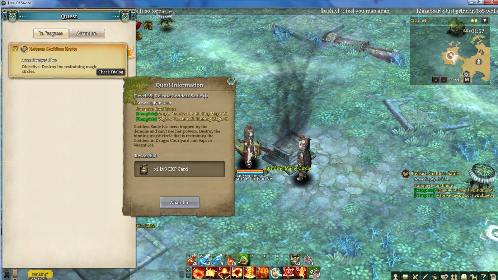 I am having issues with the Restraining Magic Circles. I can’t press [space] or anything to it. What’s odd is that when I accepted the quest. All the subquest conditions were considered complete.