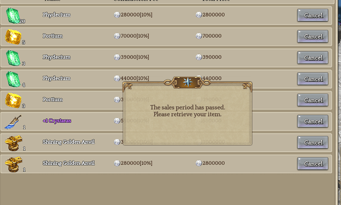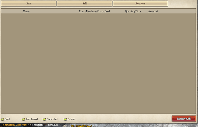 Bug Description :When the items I listed expired, I wasn’t able to retrieve them back from the Retrieve tab as the items did not appear at all.