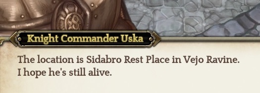 - talk to Uska, you can read “Vejo ravine” instead of “Veja ravine”