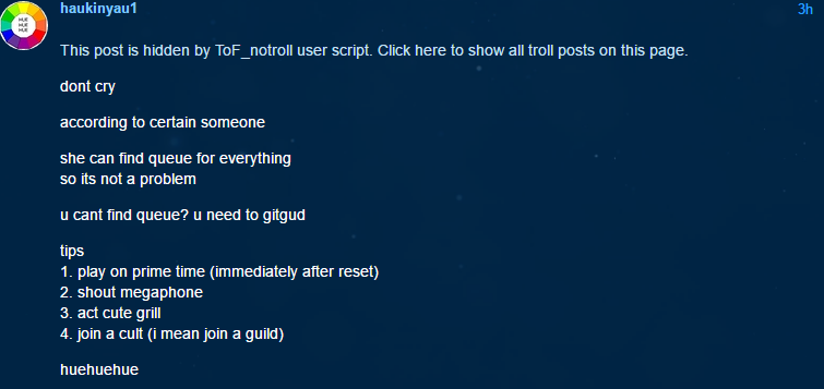 Ok, got 2 more to add to filter, any more trolls jumping on the bait to show themselves? :3