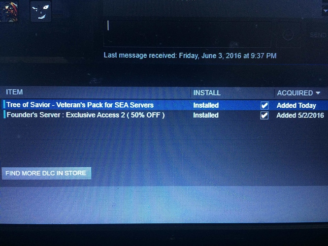 I just bought veterans pack in SEA just now… Steam library shows i bought already. But in game mail box i never receive!? How come? Someone help me check? I am playing in Telslai SEA server.