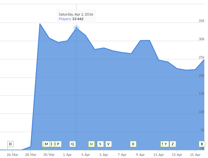 For the comparison in the OP, on April 3rd there were 31,432 players online, for a 21.2% drop of highest today vs highest 2 weeks ago. Much less than 50%.[/quote]