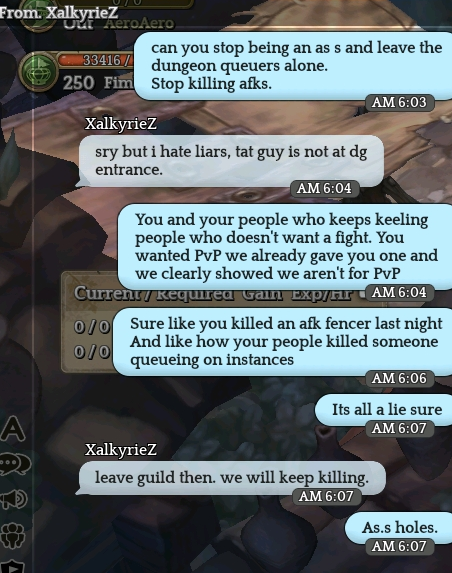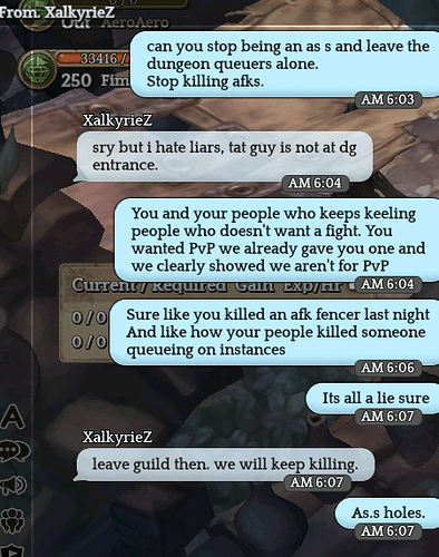 Pretty sure they have already made their point, sure they are strong but what they are doing right now to my Members is just griefing. They are killing even AFK’s and people who are just Queueing for Dungeon. I approached their GM yet they just call it a “Lie” and even told us to just “Leave” the guild.