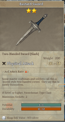 You need to learn attribute to equip 2h sword. Need to be barbarian or something else that I forgot what class it is.