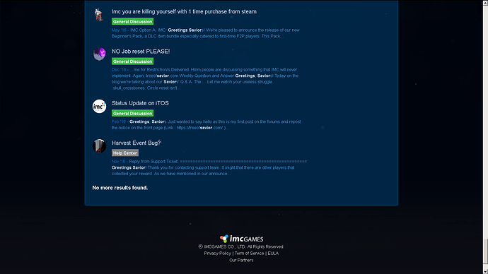 Feel free to add more and we can make this a productive thread that IMC wants to see for problems and solutions. Nothing short of hiring a real programmer and getting better servers is going to fix anything with this game right now. The way things are handled is mocked and received poorly because there’s never any real solutions to problems. People perceive it as you stealing money from them because of not taking what you’ve made and reinvesting it back into the community. They don’t want to hear it could, would, might, or possibly get fixed when the other server versions don’t have problems or fixed them already.