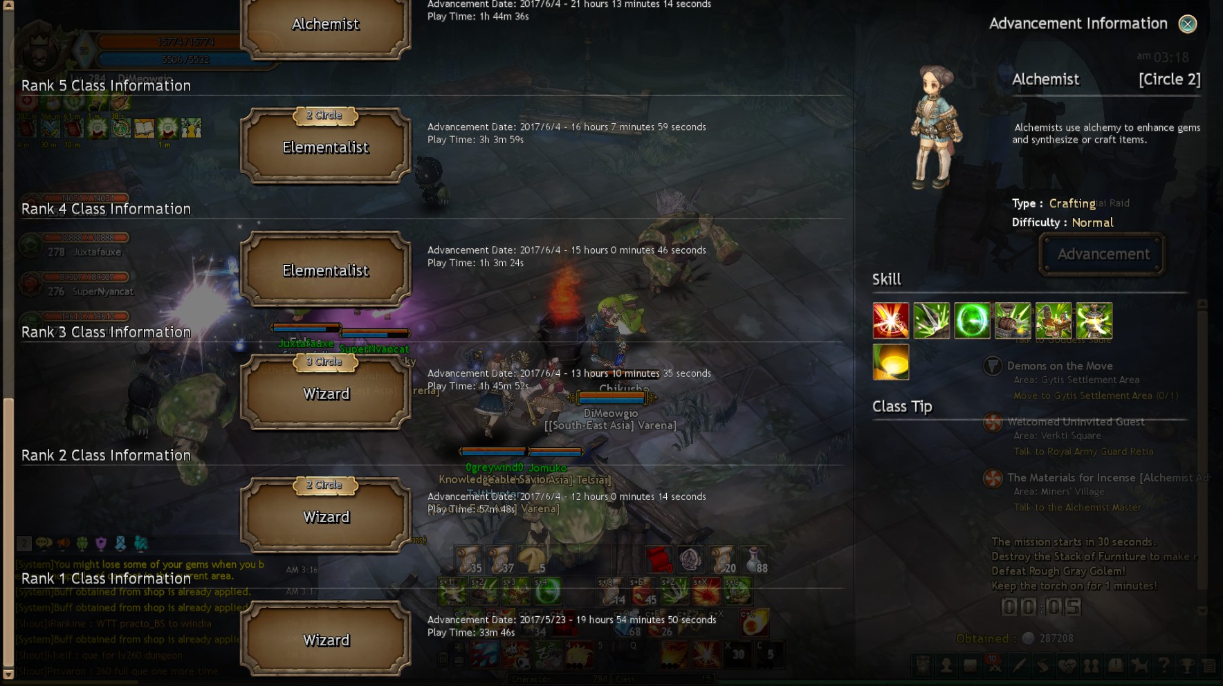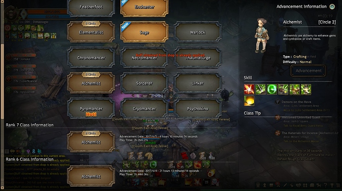 On that note though, I took a Lv1 Wizard to R8 Alchemist3 in (ignore Rank1 information as that’s the character creation date, I didn’t really play this character as it’s storage):