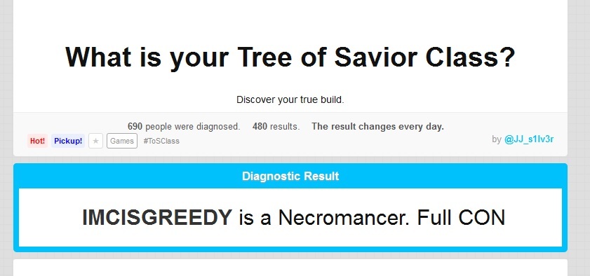 Its a random result webpage! You can create your own. Yesterday somebody posted a “what is your anime role” quiz from that page on discord, and i wondered why we didn’t had one for ToS, so created that one :D.