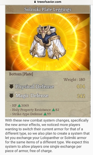 I would like to know when it will be implemented, since many players after “the big update” need to change their equipments (lolophanter/Solmiki).