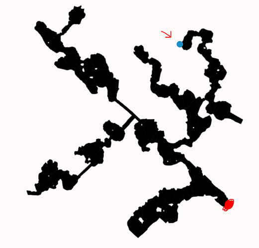The red mark is Orsha entrance to Woods of the Linked Bridges the blue dot is to Sjarejo Chamber.