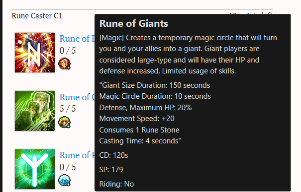 While Rune of giants from rune caster used to give +100%Max HP and now after patch it’s only 20% and it needs 4s to cast and also it cost material, it’s ok if it has only these restrictions,the problem is after getting this buff one can only use skills of wizard and rune caster, all of those making it a useless skill.