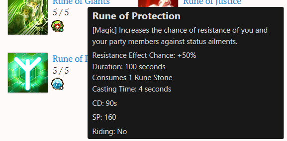 and another skill :rune of protection also needs 4s to cast and cost material. lv5 has only 50% immune to debuff(not even as effective as 2 +90 SPR bracelet before the patch).,