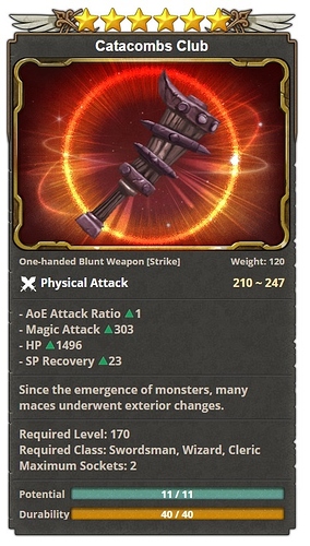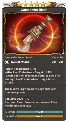 1- Catacombs Blade (very nice additional damage for plate armor mobs)