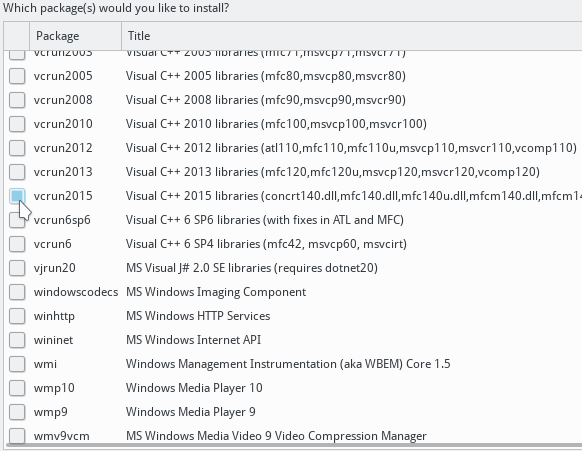 - Install vcrun2015 with winetricks