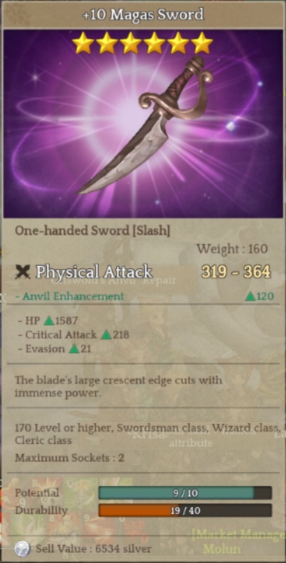 dont ask how much, calculate value urself and post an offer. 9/10 durability if you want a +15 sword there is a good chance for htis one to go +15