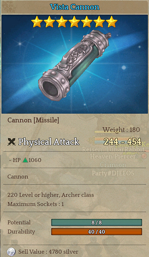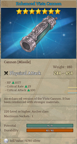 Wanting to sell: Vista Cannon (crafted or recipe) Enhanced Vista Cannon (crafted)