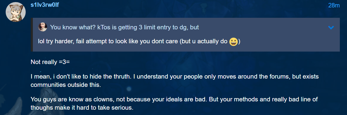 And i only have 3 hour Monday to Friday play TOS, Saturday & Sunday all day do dungeon run for silver farming with 5 char. Nerf silver drop from Dungeon is ■■■■!!! And is not worth to farming dungeon all day long. Bot/afk farming is do better then me and dont even waste time…